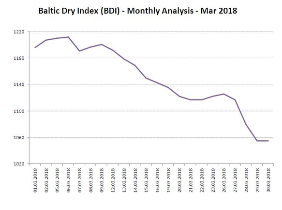 [UTC] 04APR2018 - NEWS - Baltic Dry Index value down to a level 1016 on 03 Apr 2018, last month average value 1149.73
