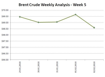 [UTC] 07FEB2018 - NEWS - Brent Crude reached lowest mark on Monday with average last week value $69.15 per barrel