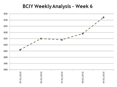 [UTC] 12FEB2018 - NEWS - BCIY rose to a level 632.00 with last week average value 617.20