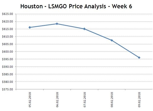 [UTC] 14FEB2018 - NEWS - Houston LSMGO price down to a level 573.50 with last week average value 610.60