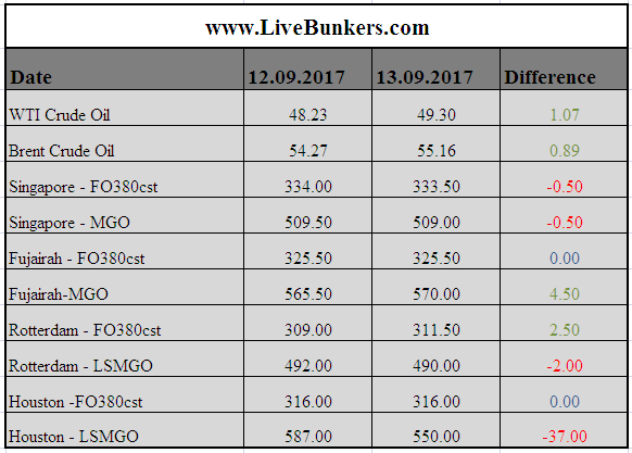 14SEP2017 - LiveBunkers.com - Previous Day Market Prices