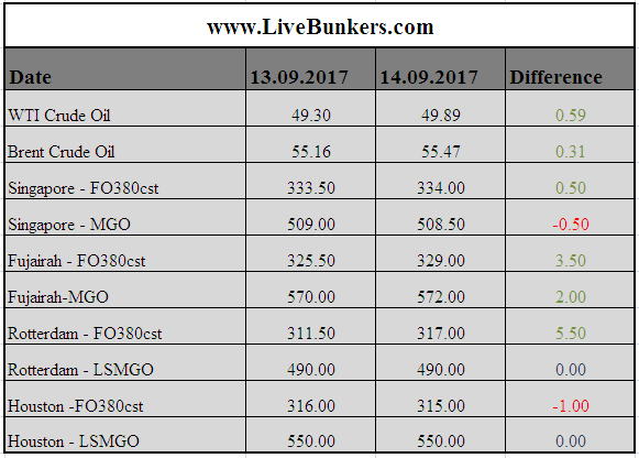 15SEP2017 - LiveBunkers.com - Previous Day Market Prices