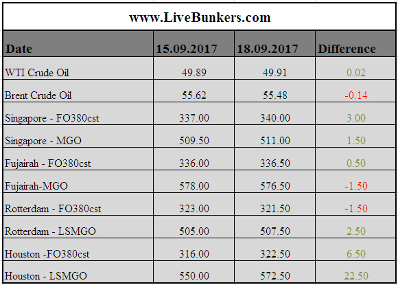 19SEP2017 - LiveBunkers.com - Previous Day Market Prices
