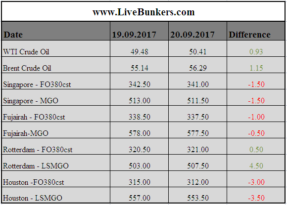 21SEP2017 - LiveBunkers.com - Previous Day Market Prices