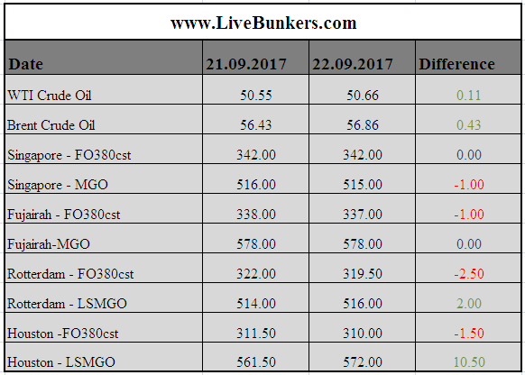 25SEP2017 - LiveBunkers.com - Previous Day Market Prices